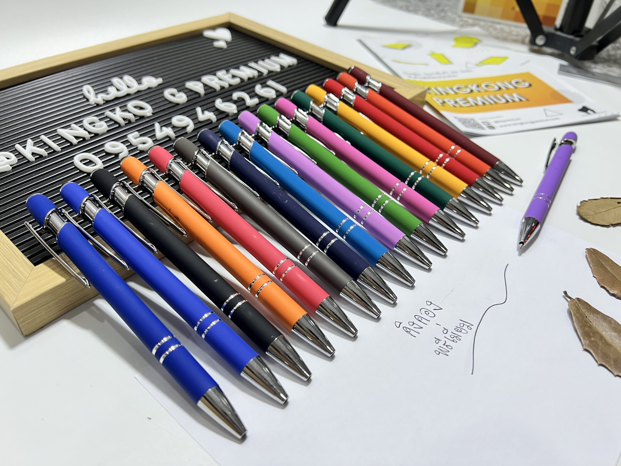 ปากกาโลหะเป็นสินค้าพรีเมี่ยมที่สื่อถึงความหรูหราและความเป็นมืออาชีพ เหมาะสำหรับกลุ่มเป้าหมายผู้บริหารและเจ้าของธุรกิจ SME น้ำหนักที่พอเหมาะและความสมดุลในการจับถือทำให้เขียนได้อย่างลื่นไหล การสกรีนโลโก้บนตัวปากกาด้วยเทคนิคที่ทันสมัยจะให้ผลงานที่คมชัดและทนทาน